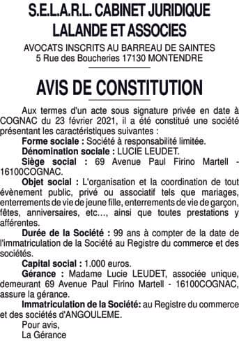 La présentation de votre annonce peut varier selon la composition graphique du journal