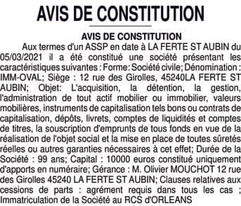 La présentation de votre annonce peut varier selon la composition graphique du journal