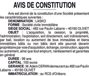 La présentation de votre annonce peut varier selon la composition graphique du journal