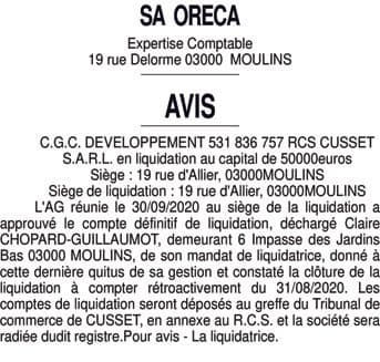 Clôt. liqu. C.G.C. DEVELOPPEMENT