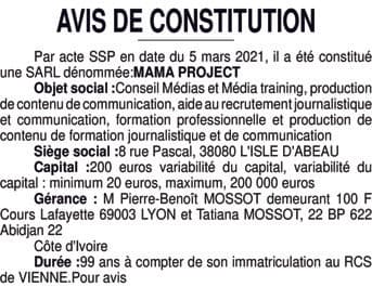 La présentation de votre annonce peut varier selon la composition graphique du journal
