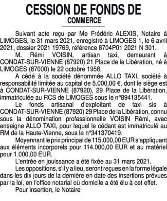 La présentation de votre annonce peut varier selon la composition graphique du journal
