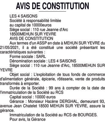 La présentation de votre annonce peut varier selon la composition graphique du journal