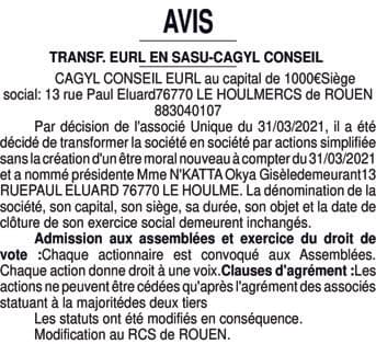 La présentation de votre annonce peut varier selon la composition graphique du journal