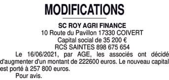 Modification SC ROY AGRI FINANCE