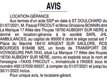 La présentation de votre annonce peut varier selon la composition graphique du journal