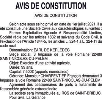 La présentation de votre annonce peut varier selon la composition graphique du journal
