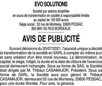 La présentation de votre annonce peut varier selon la composition graphique du journal