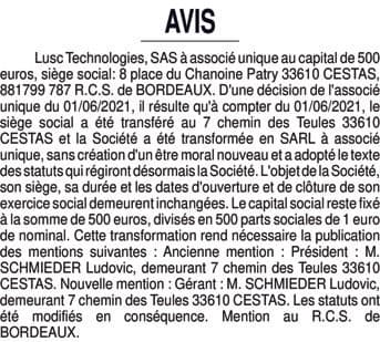 La présentation de votre annonce peut varier selon la composition graphique du journal