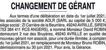 ADLR - CHANGEMENT DE GERANT