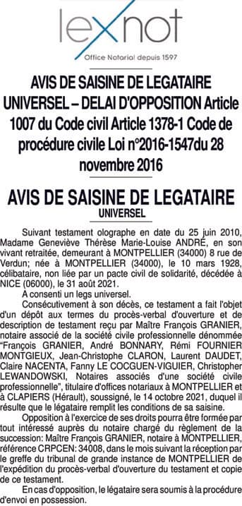 La présentation de votre annonce peut varier selon la composition graphique du journal