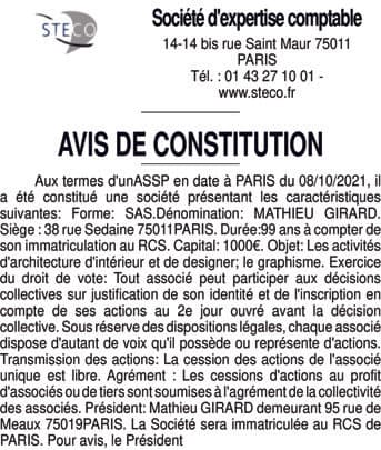 La présentation de votre annonce peut varier selon la composition graphique du journal