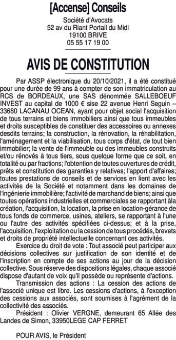 La présentation de votre annonce peut varier selon la composition graphique du journal