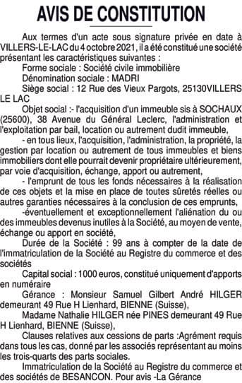 La présentation de votre annonce peut varier selon la composition graphique du journal
