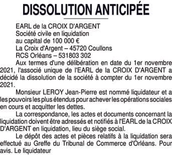 EARL de la CROIX d'ARGENT - Loiret (45)