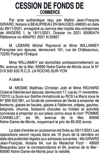 La présentation de votre annonce peut varier selon la composition graphique du journal