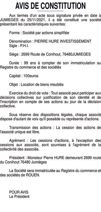 SAS PIERRE HURE INVESTISSEMENT - Seine Maritime (76)