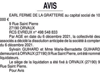 EARL FERME DE LA GRATTERIE - Eure (27)