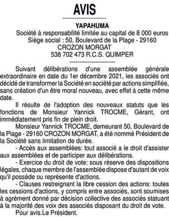 YAPAHUMA - Finistère (29)