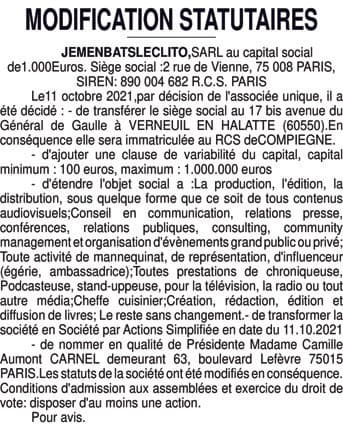 La présentation de votre annonce peut varier selon la composition graphique du journal