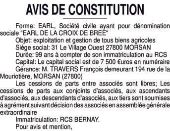 La présentation de votre annonce peut varier selon la composition graphique du journal