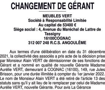 La présentation de votre annonce peut varier selon la composition graphique du journal