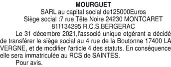 TRANSFERT SIEGE MOURGUET NOUV