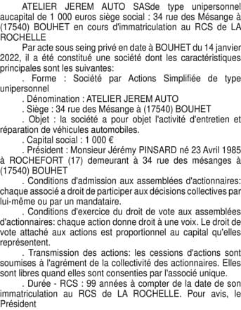 ATELIER JEREM AUTO - Charente Maritime (17)