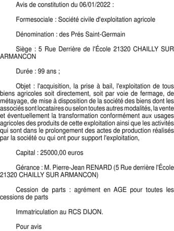 SCEA DES PRES SAINT GERMAIN - Côte d'Or (21)