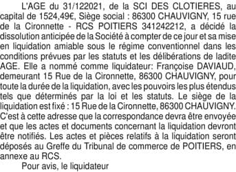 SCI DES CLOTIERES - disso - FDU