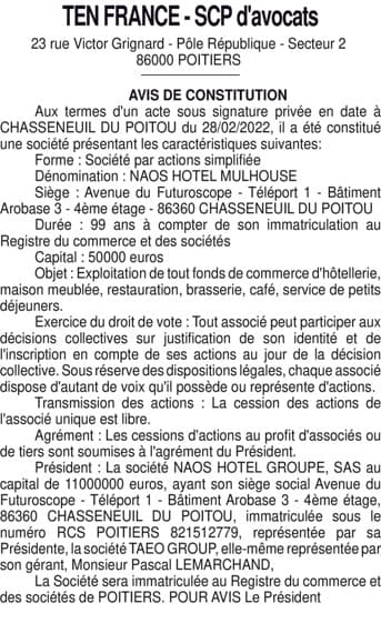 NAOS HOTEL MULHOUSE - Vienne (86)