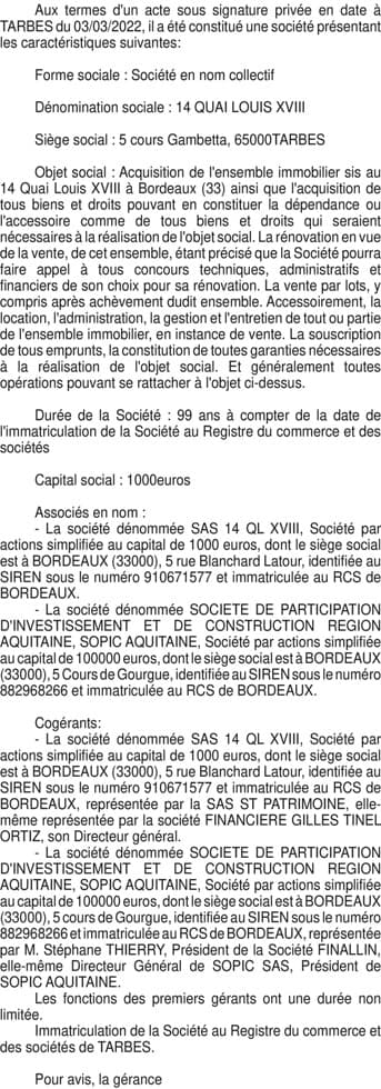 SNC 14 QUAI LOUIS XVIII CONSTIT