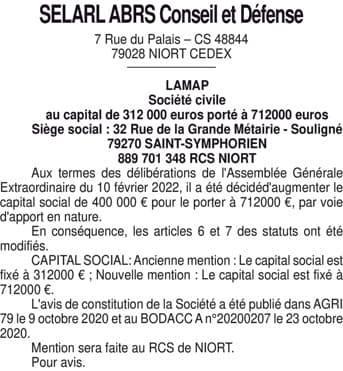 LAMAP - Augmentation de capital