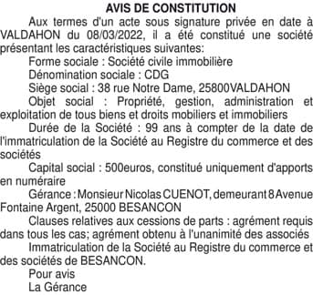La présentation de votre annonce peut varier selon la composition graphique du journal