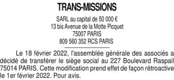 La présentation de votre annonce peut varier selon la composition graphique du journal