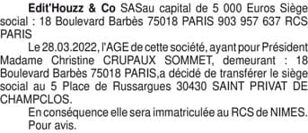 La présentation de votre annonce peut varier selon la composition graphique du journal