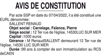 La présentation de votre annonce peut varier selon la composition graphique du journal