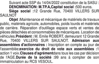 Constitution SASU M.T.P.A