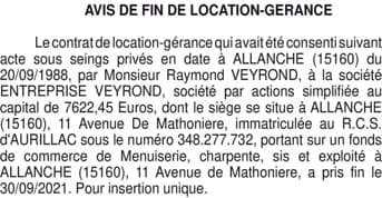 La présentation de votre annonce peut varier selon la composition graphique du journal