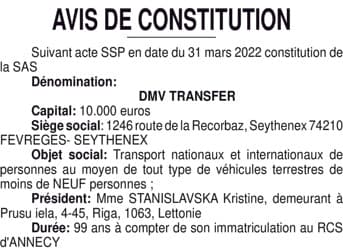 69 325 - SAS DMW TRANSFERT