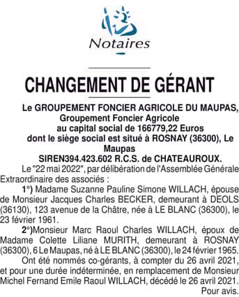 SELARL Bruno LUTHIER, Laurent LUTHIER et Myriam PENIN-MAILLET - Indre (36)