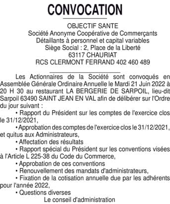 dans le journal L'ANNONCEUR LEGAL D'AUVERGNE