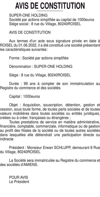 SUPER-ONE HOLDING (M. SCHLUPP) - Somme (80)