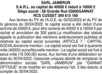 SAL JAMBRUN Réduc Cap Chgt Dénom