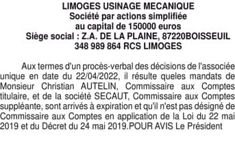 LIMOGES USINAGE MECANIQUE - Haute Vienne (87)