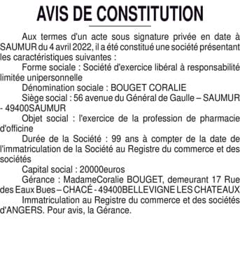 La présentation de votre annonce peut varier selon la composition graphique du journal