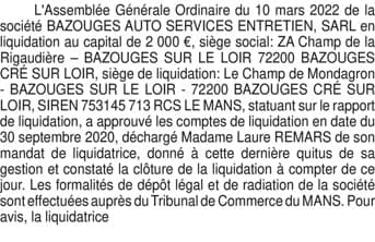SARL BAZOUGES AUTO SERVICES ENTRETIEN - Sarthe (72)