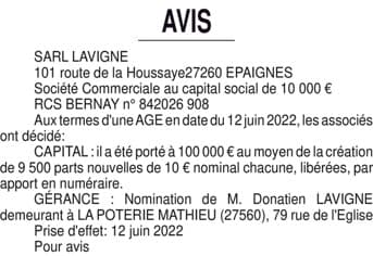 La présentation de votre annonce peut varier selon la composition graphique du journal