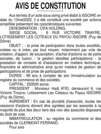 La présentation de votre annonce peut varier selon la composition graphique du journal