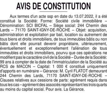 SCI BICFAL - Saône et Loire (71)